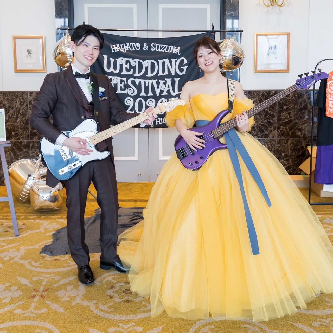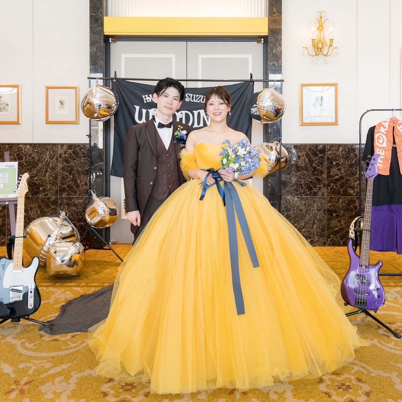 WEDDING BELLで黄色のドレスを選びました。どうしても黄色のドレスが着たかったのですが、1回目の試着の時は入らず…ダイエットを頑張り、当日は綺麗に着ることができました!