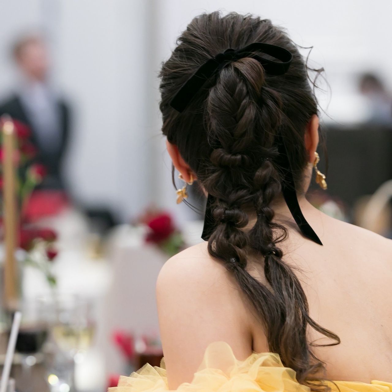 変形のポニーテールがしたくてお願いしました。ベロアのリボンを付けたところがお気に入りです!