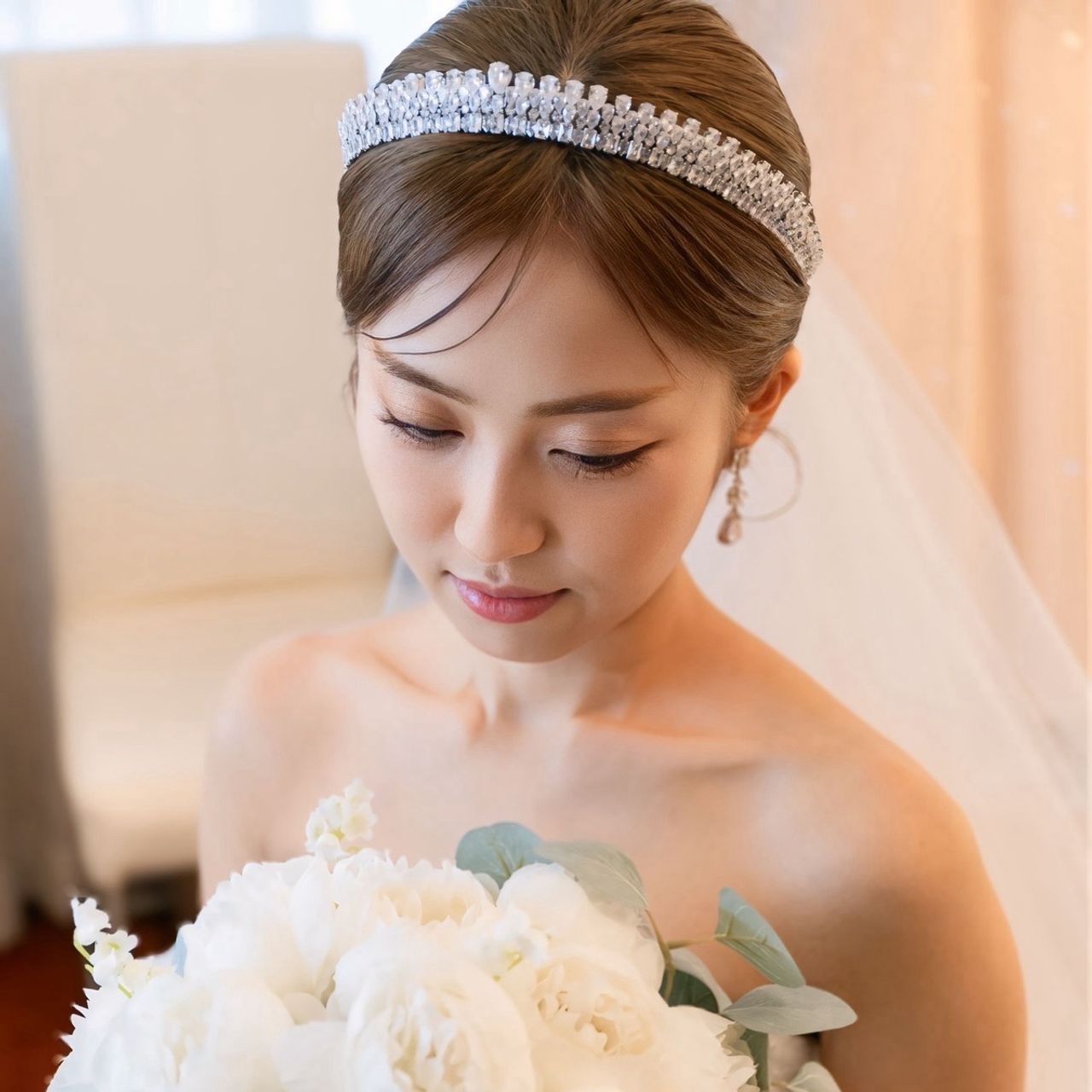 1着目のときは、シンデレラのカチューシャタイプのティアラをつけました。「自分には似合わなさそう…」と思っていたのですが、試着してみたらすごく可愛くて、その場で即決したものです!