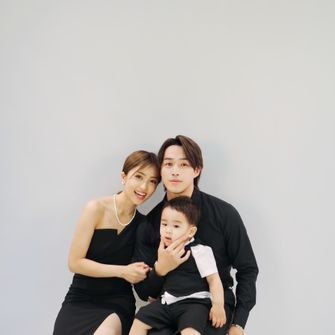 セルフ前撮りでも、私は黒ドレス、夫は黒シャツ、息子は黒スーツで合わせ、ウェディングドレスも「真っ白」で「キラキラ」なシンデレラのドレスに即決でした。