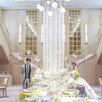 また、この会場を選んだ理由は、装花のクオリティがとても高かったことに加え、披露宴会場の高い天井や丸みのあるシャンデリア、正面に伸びる階段などのデザインを一目見て感動したからです。