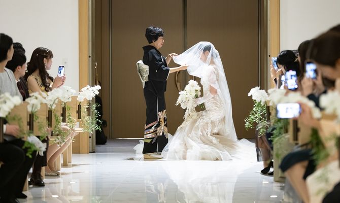 ゲストの皆様の記憶に残る、所々でクスッと笑える、楽しんでいただけるお式を目指しました。自分たちの好きを詰め込んで、ラグジュアリーで洗練された雰囲気に仕上がって大満足しています。東京會舘にした決め手はチャペルの開放感と会場のクラシカルな雰囲気。遠方からのゲストも多いため、東京駅から徒歩でも来られるアクセスの良さもポイントでした。