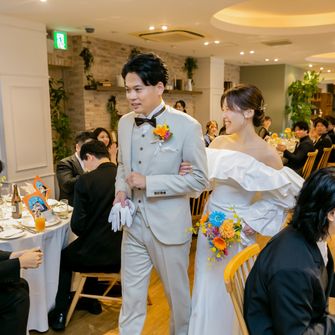 結婚式は、自分たちの大切な人に感謝の想いを伝える場にしたいと考え、私たちにとってのありがとうの形は、お招きする方全員に全力で楽しんでもらうことだと定義しました。