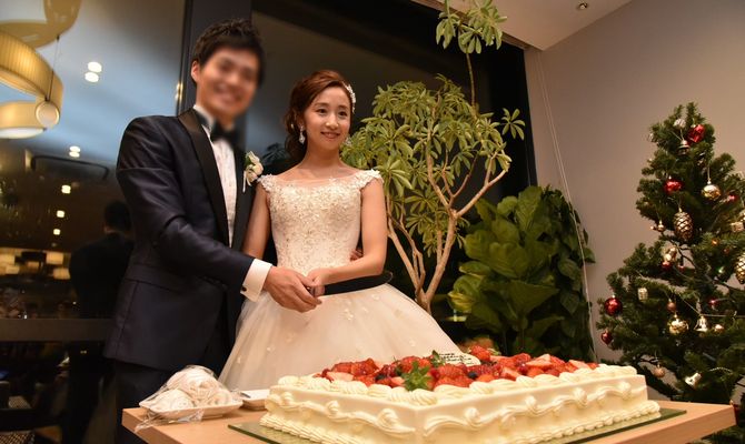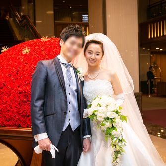 格調高く歴史ある帝国ホテル東京での結婚式。特にクリスマスシーズンは、大きなツリーと赤い薔薇のエントランスフラワーで一層華やかになります。