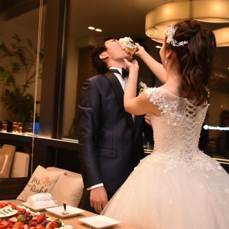 そんなパーティシーズンのひとときをゲストにも楽しんでもらいたく、披露宴は赤とゴールド、キャンドルを基調に装花や小物を考え、華やかさも演出しました。