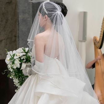 ドレスはSIBILLAの1着のみでしたが、挙式と披露宴で髪型やヘアアクセサリーを変えて、雰囲気の違いを楽しみました。