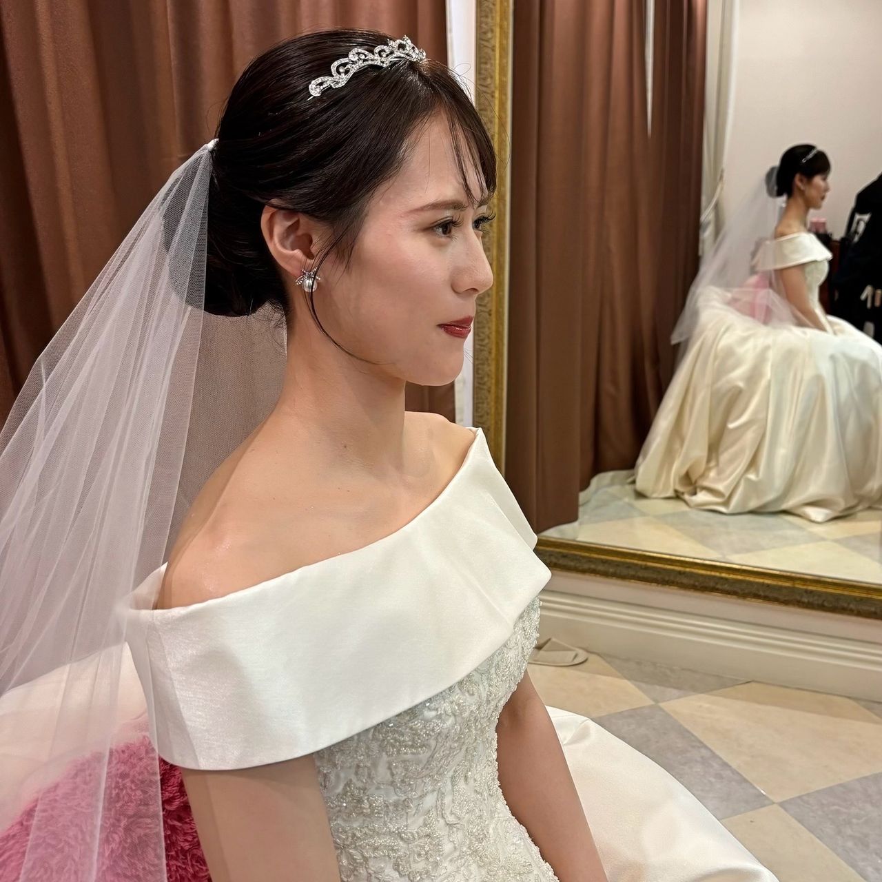 お色直しはダウンヘアに星のピンを添え、さりげないアクセントを加えたのがポイントです。