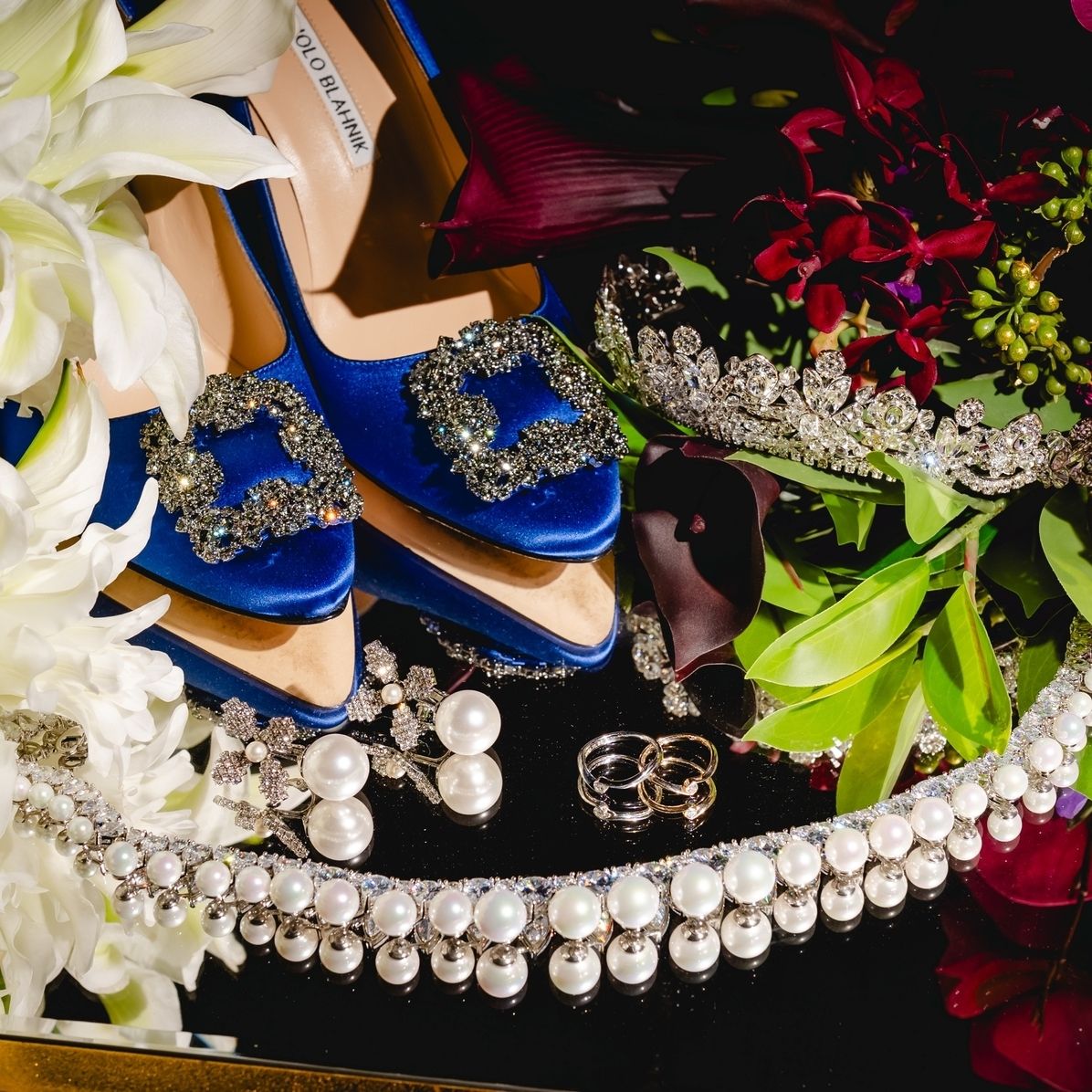 サムシングフォーのうちの1つであるサムシングブルーを取り入れたかったので、鮮やかな青色をチョイスしています。