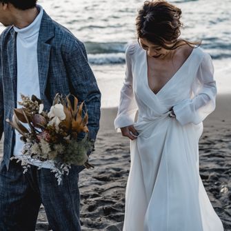 等身大の私たちでいられることをコンセプトに。背伸びはせず、シンプルでかつどこかカジュアルさを残しつつもゲストにはしっかりおもてなしを。バンケットに合わせて色味は白・ダスティーブルー・シルバーを基調に、スタイリッシュな雰囲気にしました。
