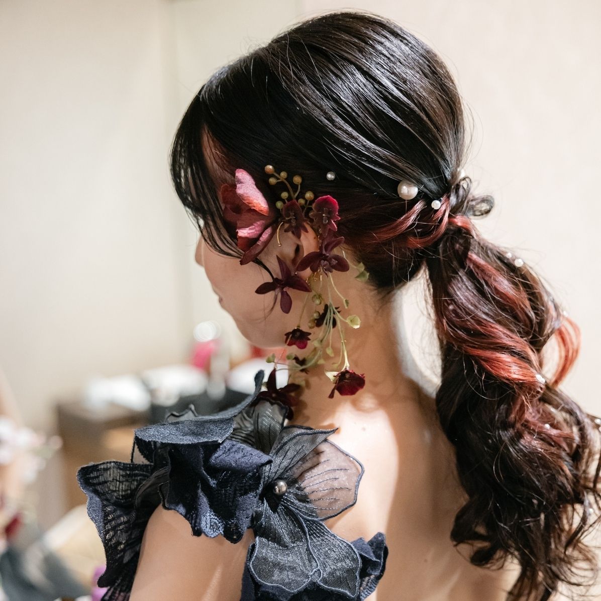 赤のインナーカラーとも相性抜群でした。また、前撮りでも着用しました!