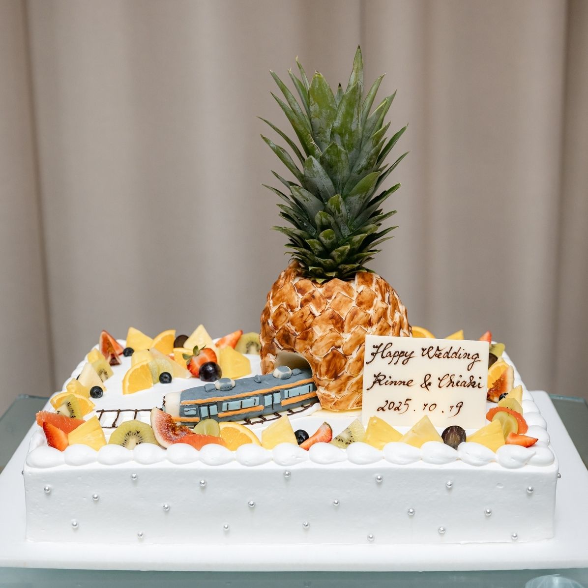 新婦が大好きなパイナップルと新郎が大好きな電車をかけあわせました!🍍🚃