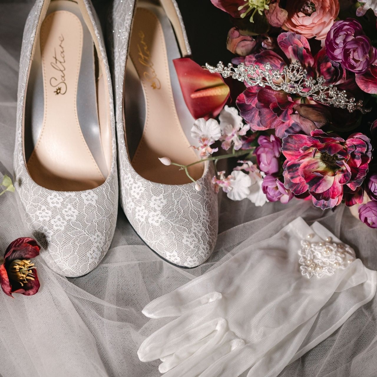 ヒールが太めで歩きやすいこと、ドレスに合うシルバーで探しました👠