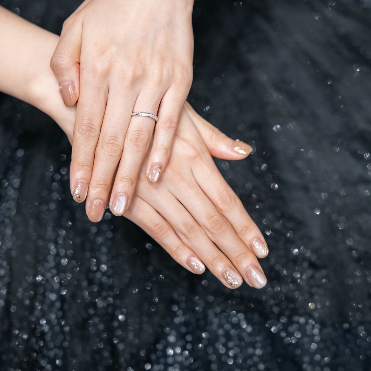 Instagramでブライダルのネイルデザインを探し、好きな雰囲気をベースにネイリストさんと相談しながら決めています。