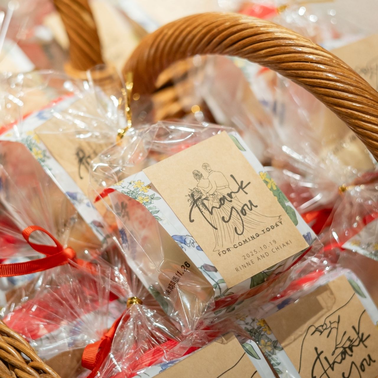 さらに、席札ギフトやプチギフト、エスコートカードをメッセージカードにするなど、ゲストへのプレゼントも多めに取り入れました🎁