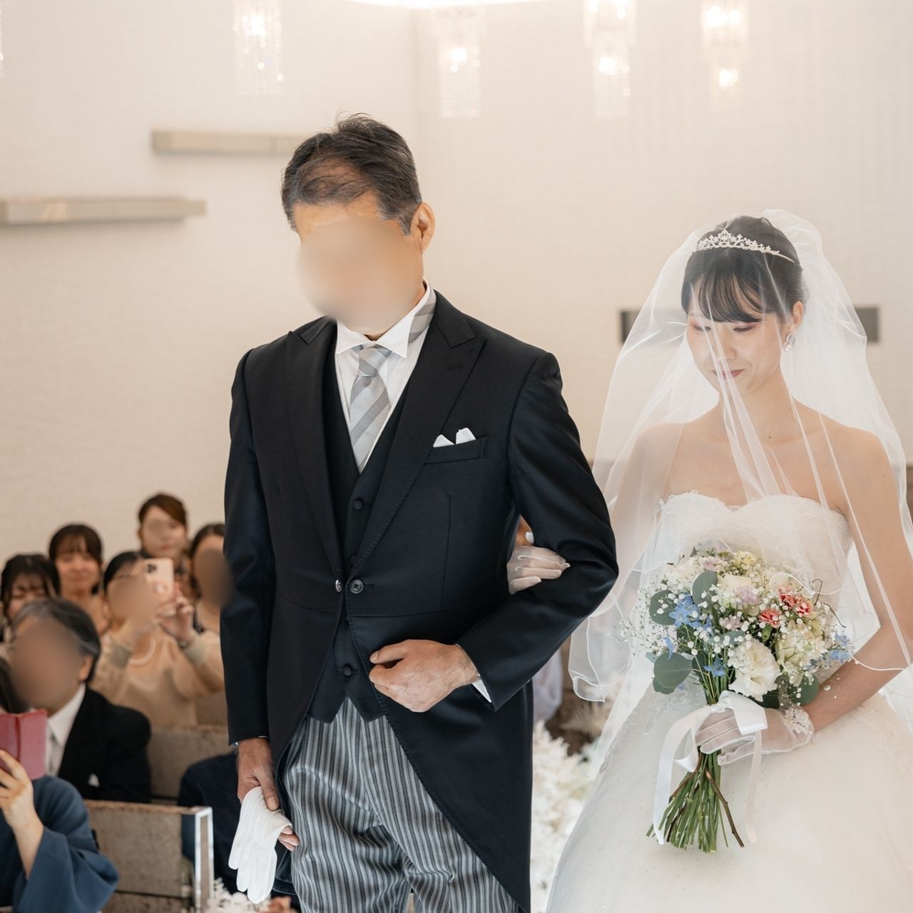 父と歩くバージンロードの先にいる新郎を見て「この人と結婚するんだ」と改めて実感し、感動したことを覚えています。
