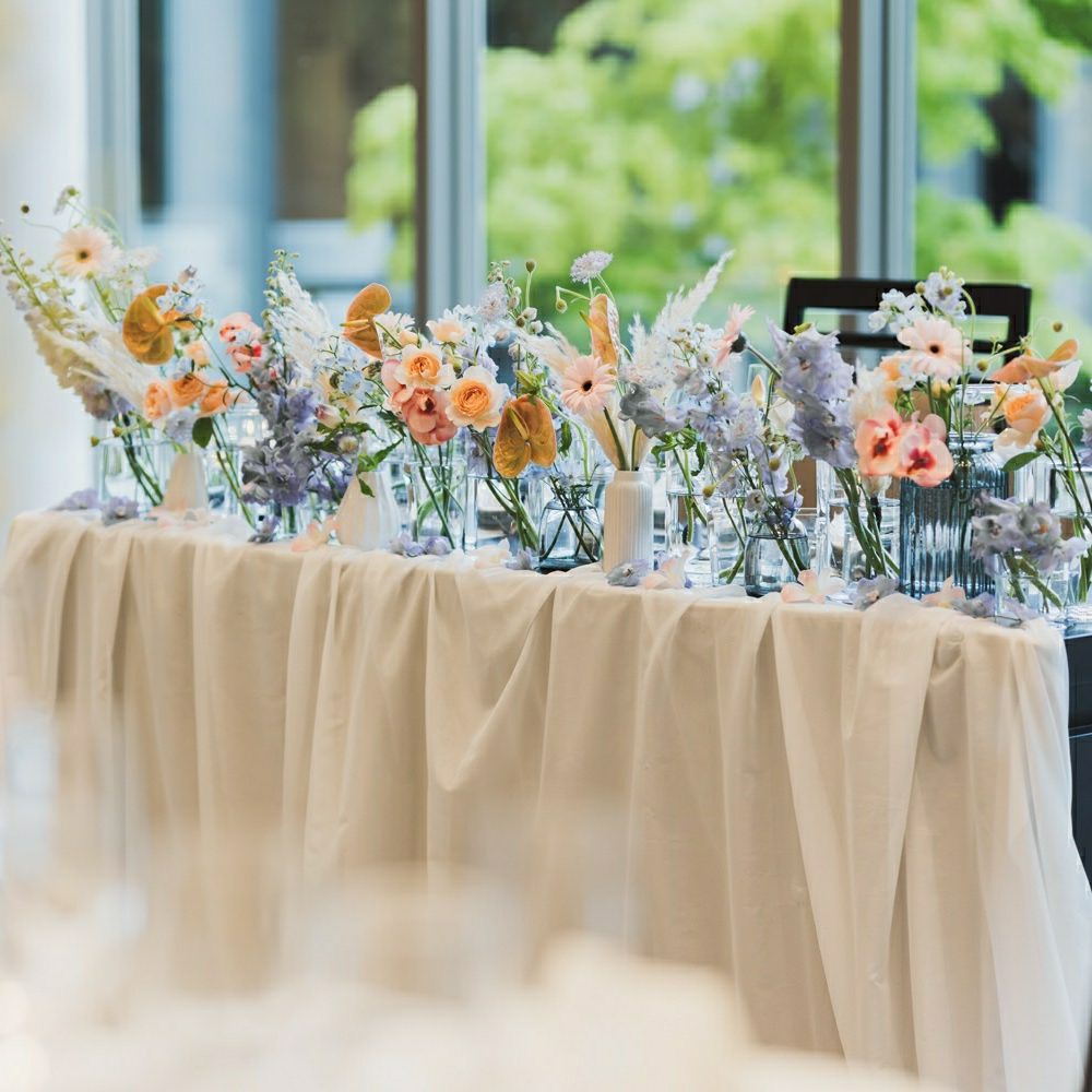 装花やペーパーアイテムの色味を揃えることで、写真に残したときの世界観も大切にしました。