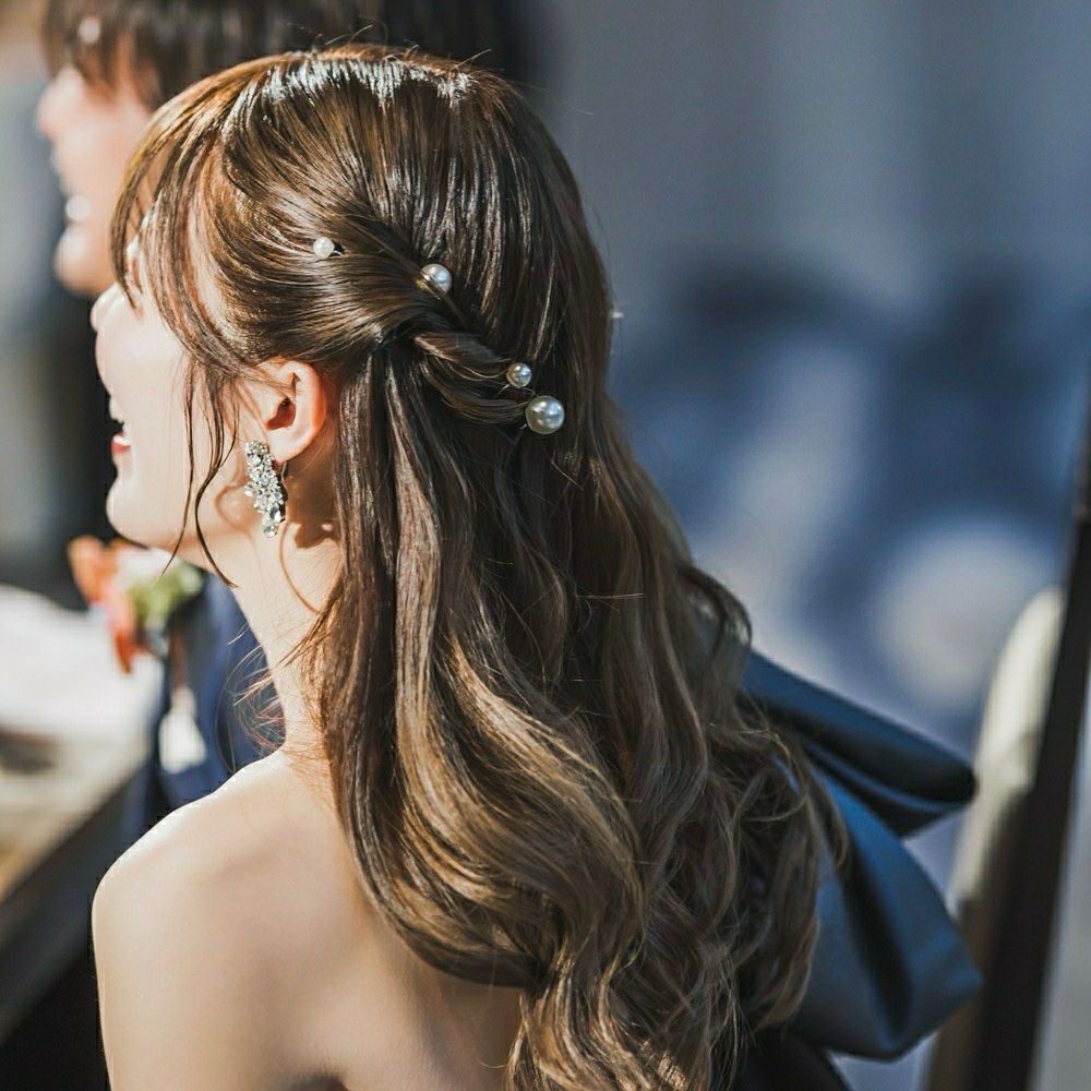 カラードレスではずっとしたいと思っていたハーフツインにしました♡