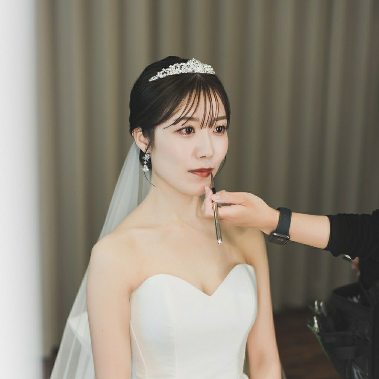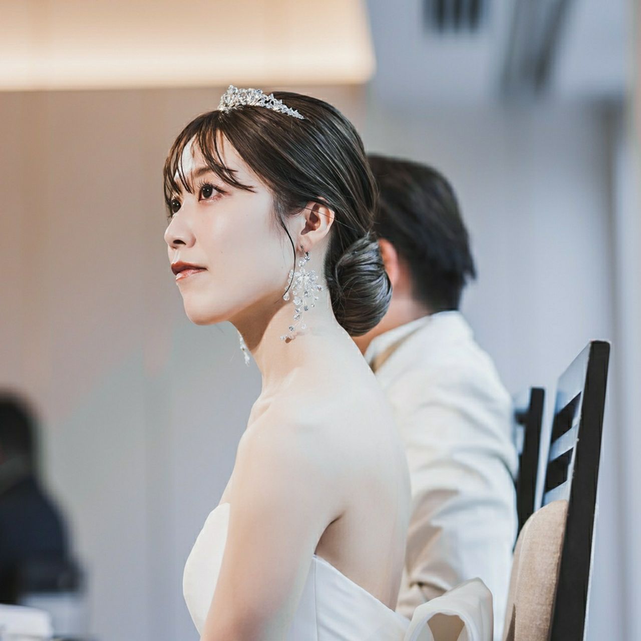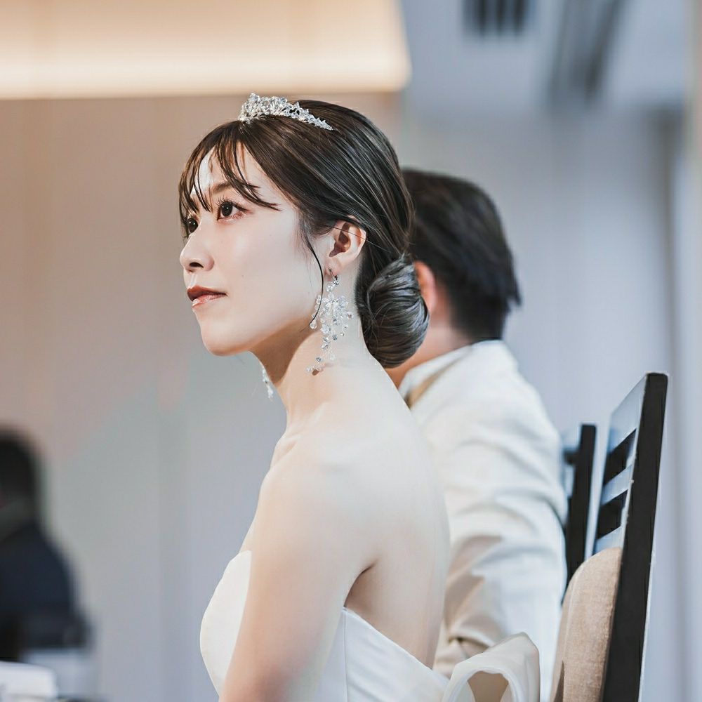 上品さを取り入れるため、シルバーでキラキラとした大きめのティアラを着けました。