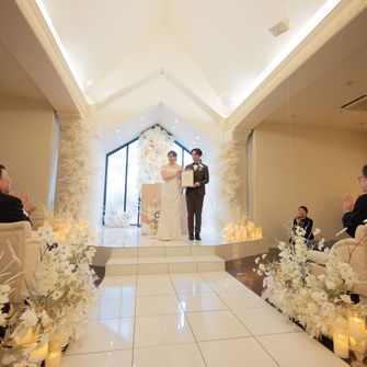 あえて挙式の雰囲気を少し暗めにして、ランタンを飛ばしたりキャンドルの数を増やしたりすることで、幻想的な空間を演出しました。