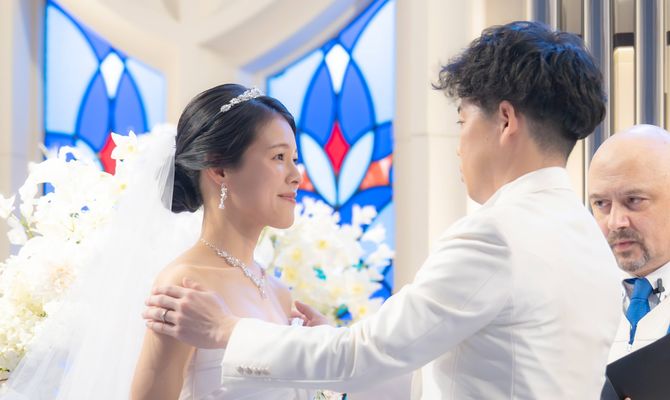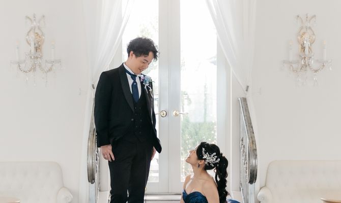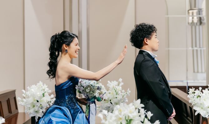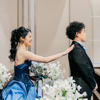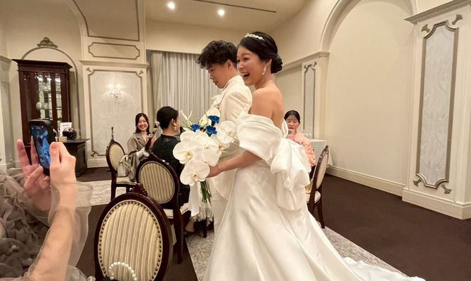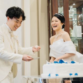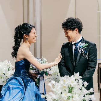 アニヴェルセル白壁の決め手はバージンロードとお料理の美味しさです。ロイヤルブルーのバージンロードがとても印象に残ったのと、見学の際に試食させていただいたお料理がとても美味しく「ここならゲストに満足のいくおもてなしができ、皆が笑顔で過ごせる」と直感し決めました。