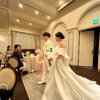これまでお世話になった方々への感謝と、日頃伝えきれない愛情を届ける場にしたいという想いを込めました。披露宴はチャペルの雰囲気とは変わり、少し落ち着きのある会場を選びました。アットホームな雰囲気を作り、ゲストがリラックスしながら楽しめる空間づくりを意識しています。