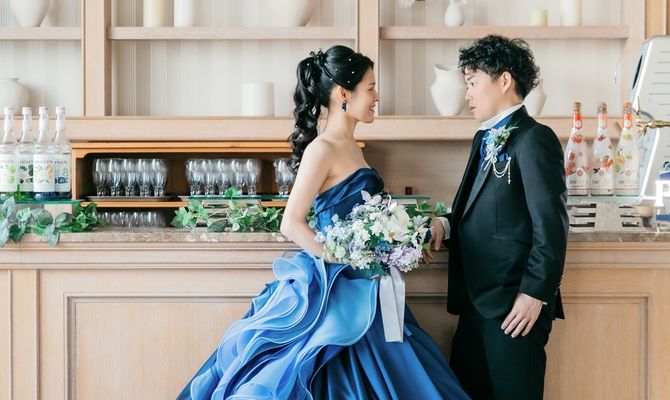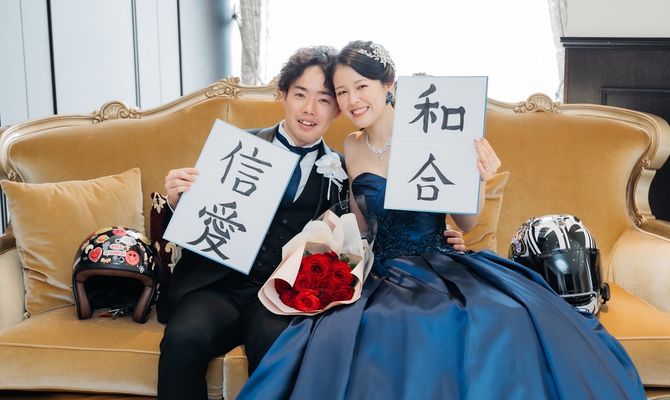 またテーマは“2人らしい”に。装花やアイテムでそれを表現し、新郎新婦をイメージできるように見た目にも心にも心地よい時間を演出しました。