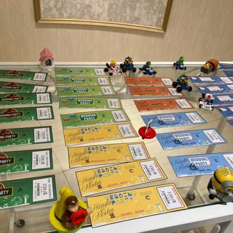 そして、招待したゲストにも身近にユニバの雰囲気を楽しんでもらえたらと思い、エスコートチケットはユニバの入場チケットをモチーフにして手作りしています。