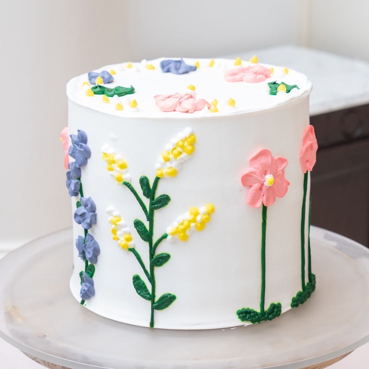 花が好きで、会場も花で溢れていたため、ケーキにも花を描いてもらいました。カラフルかつシンプルな花のデザインが、すごくお気に入りです!
