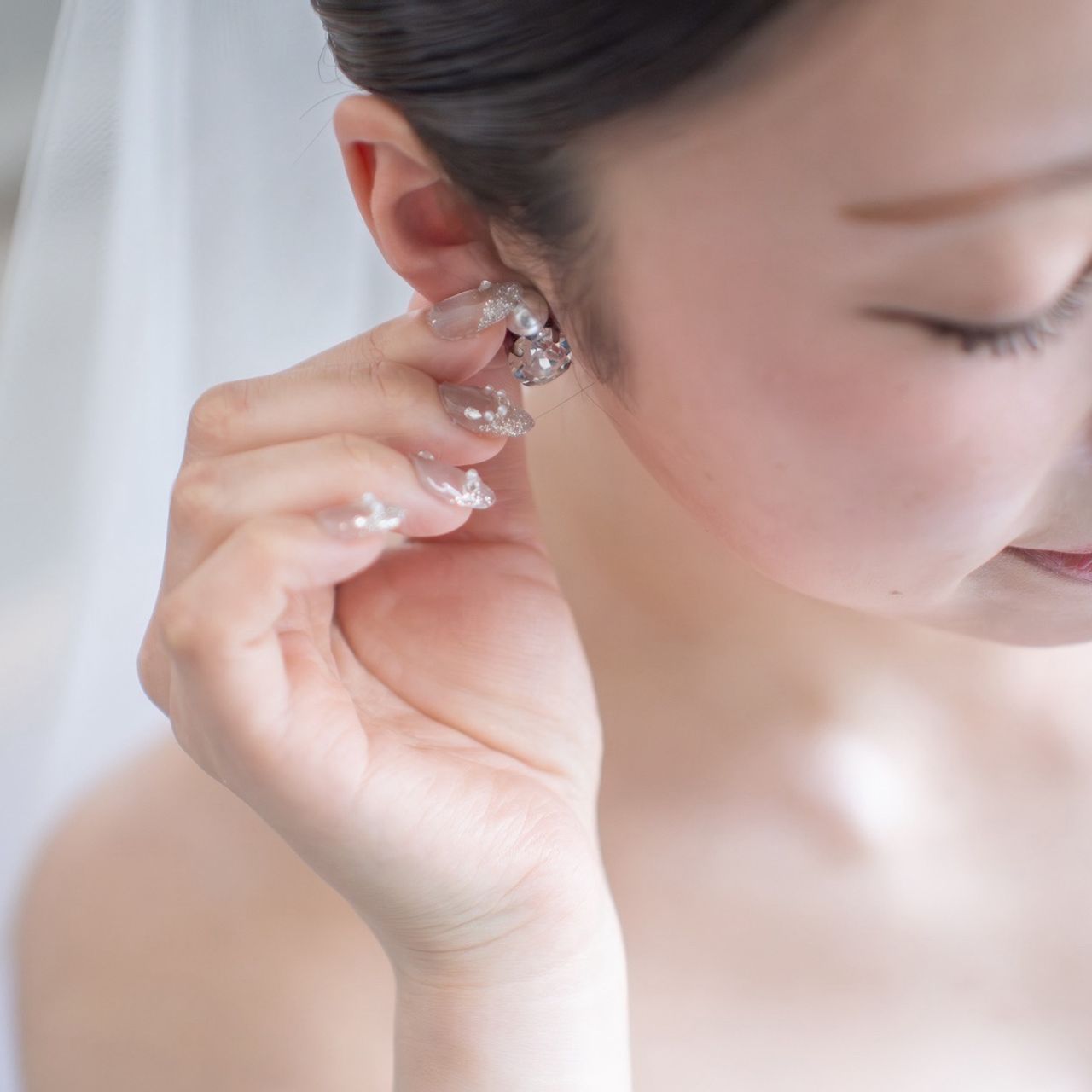 ドレスに合うように、シルバーのキラキラネイルにしました!
