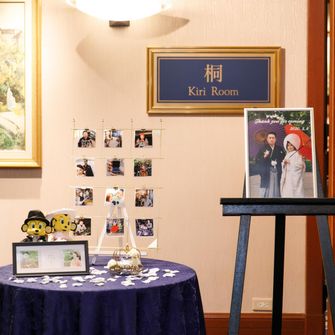 テーマは【ロイヤル×ベースボール】ドレスやヘアスタイルはロイヤルでクラシカルな雰囲気でまとめました。夫が野球好きなので、ケーキトッパーや音楽は夫の好きなチームにちなんだものを使いました!