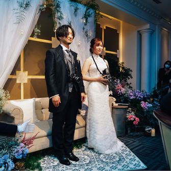 キャンプ×カメラがテーマの結婚式ペーパーアイテムはほとんど手作りお色直しの衣装やブーケはオーダーほっこりとしたこだわりを詰め込みました♡