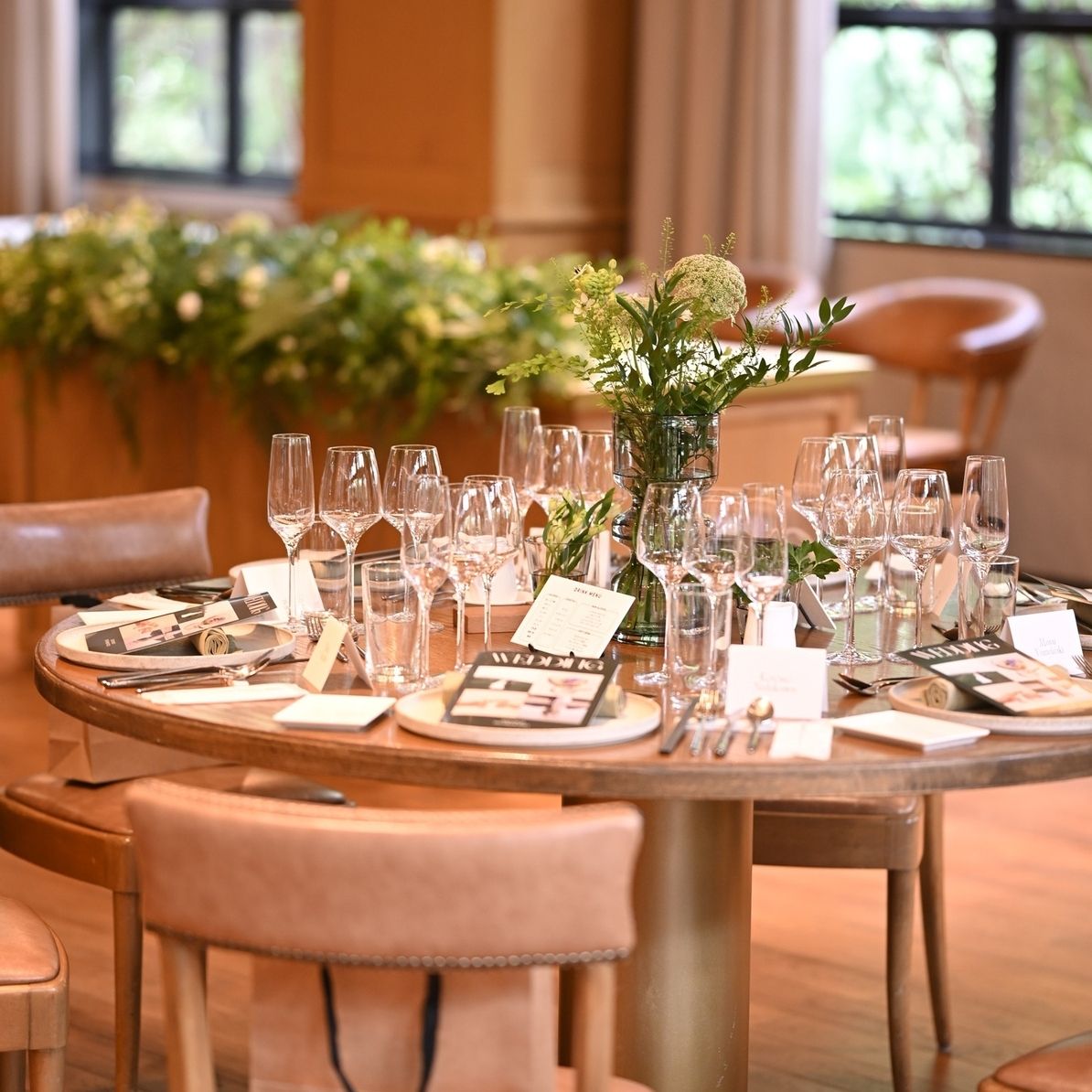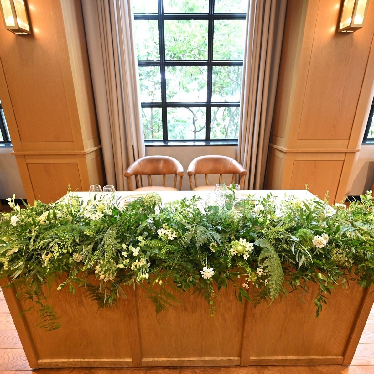 MORIの会場に合うようシンプルに緑と白でまとめていただいています🌿