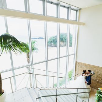 テーマは、大人可愛いリゾート感あるホームパーティーです。沖縄は透明度の高い青い海と、ほんわかでゆったりとしたところが大好きで、毎年のように訪れていました。その大好きな沖縄に親族を招き、楽しんでもらいたいと思いました。そのため、オーシャンフロントの会場を選び、余興では「島唄ポップス・三味線ライブ」をお願いしました。