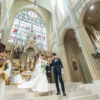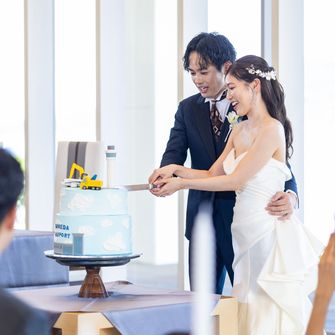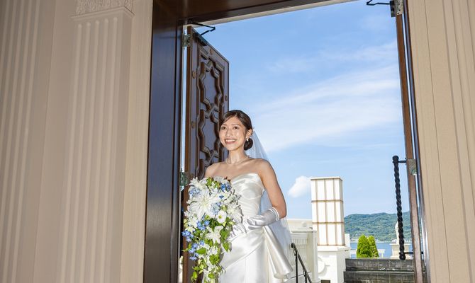 式場の決め手は、写真で伝わらないくらい迫力があり、100人以上入れる挙式会場だったことと、挙式から披露宴会場まで階段で行けるのでエレベーター待ちの時間がなかったこと、試食会での食事が美味しかったことです。馬車に乗るのも楽しみでした!