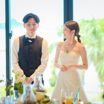 海外の、外国の方達のウエディングの雰囲気をイメージして、とにかくホワイトグリーンにこだわったナチュラルイメージの式にしました。テーマカラーはホワイトグリーンウッド(木の雰囲気)です。