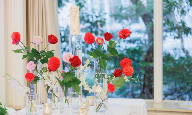 結婚式のテーマは赤いバラです!バラが好きなのでテーブルコーディネートやブーケやプチギフトなどをバラにしています!リーガロイヤルホテル大阪 ヴィニェット コレクションの決め手はチャペルとダイヤモンドルームがとても好みだったことです。また、両家の親族が住んでいる地域の間にあるホテルだったので決定しました。
