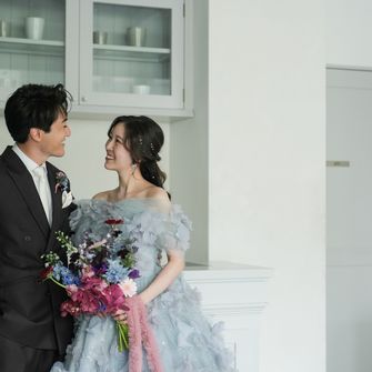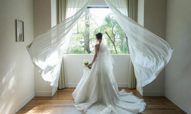 ペーパーアイテムはすべてDIYで制作し、シンプルで洗練された装飾に統一。