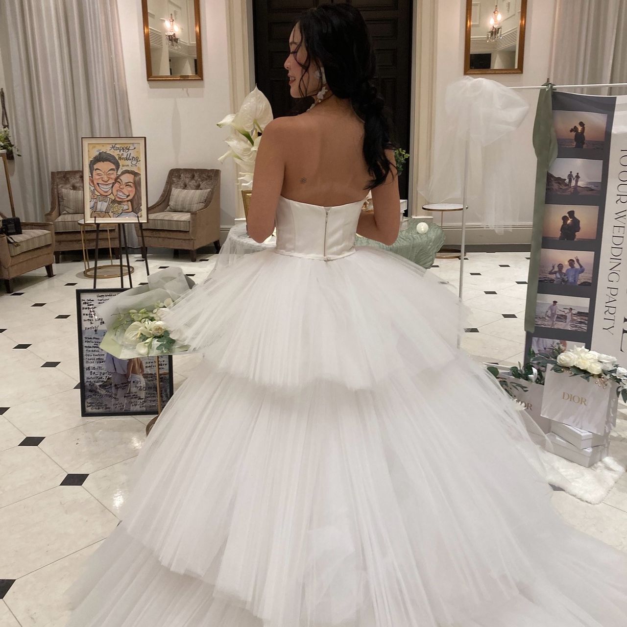 2着目もDressmoreで選びました。白が良かったので、1着目とは違うタイプのドレスにしています。可愛い雰囲気で、ふわふわのデザインを探していたため即決でした!