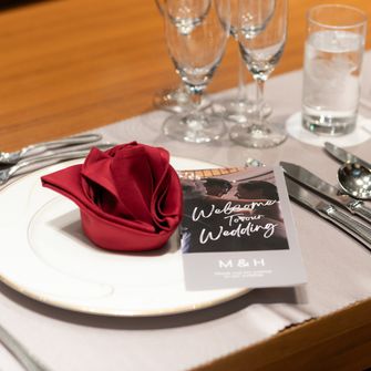 チャペルや披露宴会場の魅力が際立つよう、テーブルコーディネートや装花はあえてシンプルにまとめています。