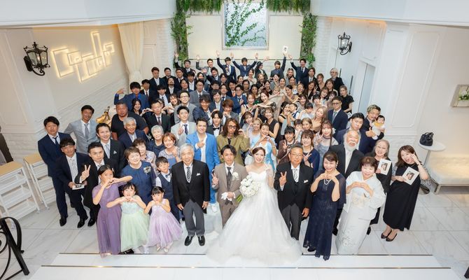 挙式が終わった後、すぐにウェルカムパーティーが出来てウェディングドレスの全身写真がゲストと撮れるのも魅力的でした。
