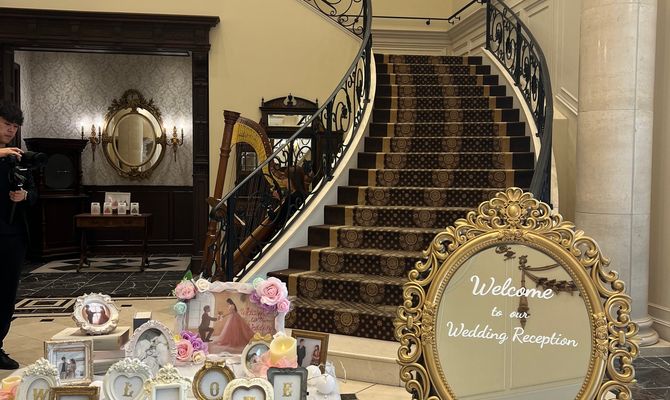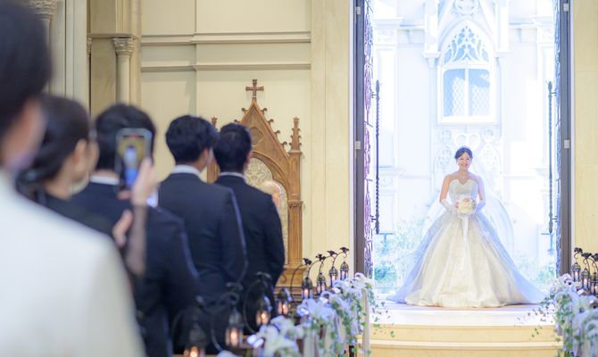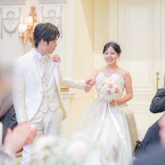披露宴会場の中でも、白を基調としたケルムスコットマナーは、私の理想そのもの。上品で可愛らしい空間、そして憧れだった階段入場が叶うことにときめきが止まりませんでした。