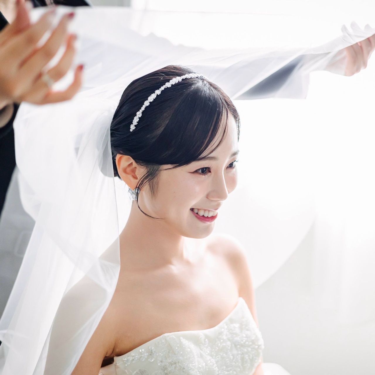 韓国の花嫁さんがよく着けているのを見て憧れていたので、細めのキラキラカチューシャにしました。