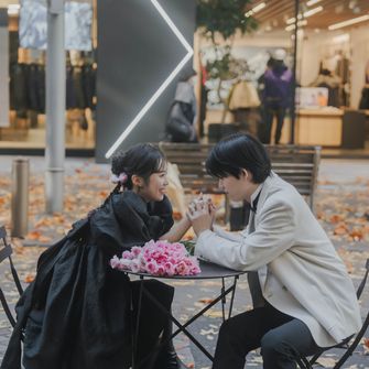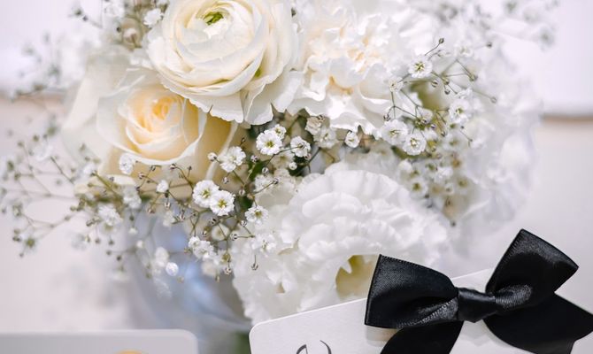 モノトーンをメインにシックな雰囲気にしつつ、リボンや薔薇で可愛らしさもプラスしました。