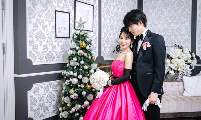 12月の挙式だったのでオーナメントやキャンドルを取り入れ、赤と緑は使わずに大人っぽくクリスマス感を演出したのもこだわりです。