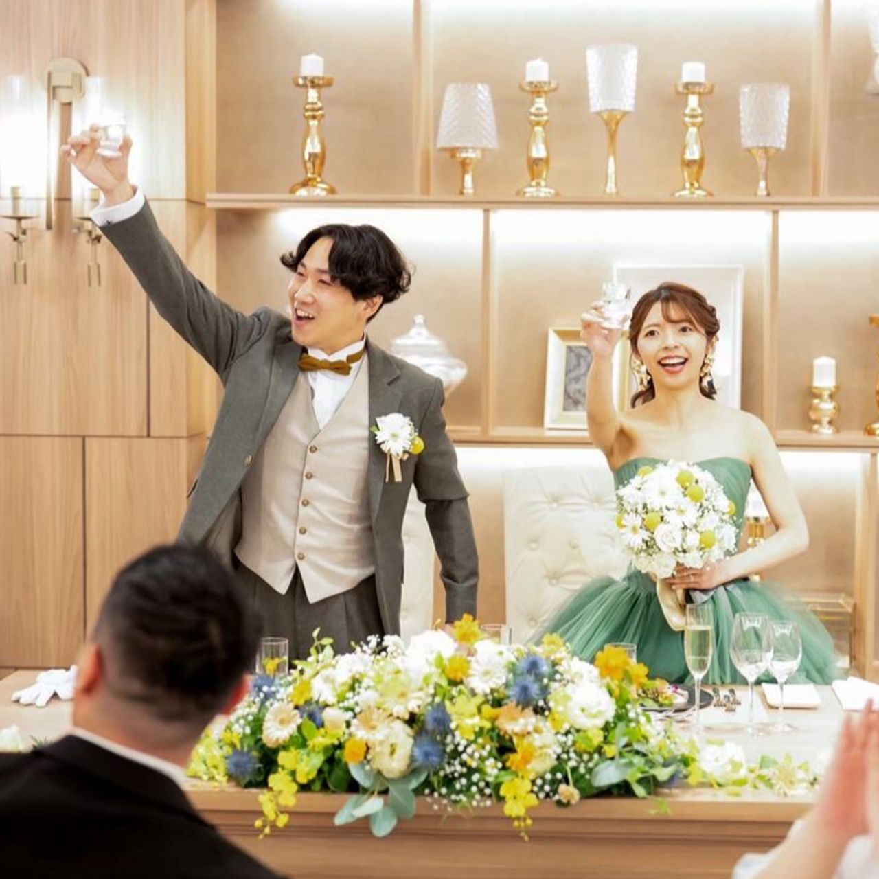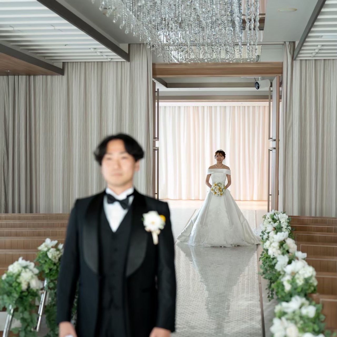 装花も、必要最低限と決めていた中でバランス良くまとまっていて、シンプルなのに寂しくない、私たちらしい雰囲気に仕上がっていたのが嬉しかったです。これまでの準備がすべて報われたような気持ちになり、緊張よりも「早くみんなに見てもらいたい」というワクワクの方が大きくなった瞬間でした。