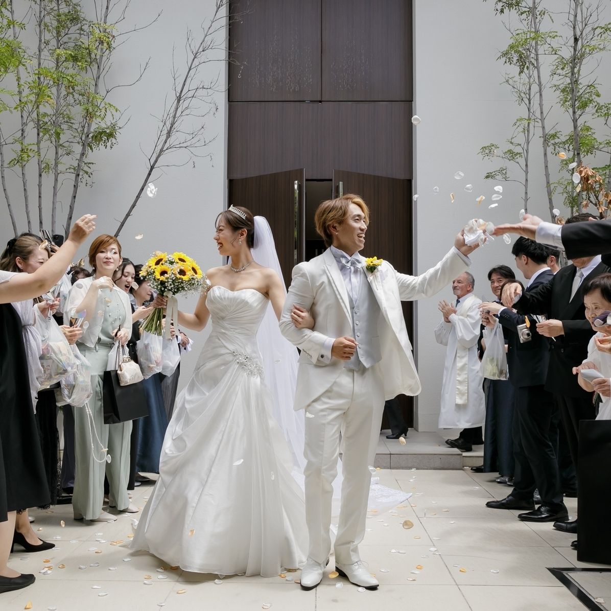 そのため、挙式の際も向日葵のお花を持って入場しました。