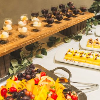 ゲストに結婚証明書への署名作業を挙式前にお願いした際は、コーヒーカップやトレー等の装飾をピクニック風にしたり、ピクニックには果物が欠かせないと思ったので、テーブルナンバーやエスコートカードに果物の絵柄を入れて、果物狩りをイメージさせるなど、テーマの要素を取り入れました。