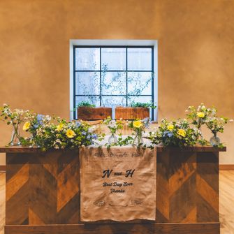 堅苦しくない笑顔溢れる式にしたかったことと、お互いに自然が好きで、自然の中でご飯を食べるのが好きだったことからこのテーマに決めました。