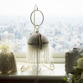 特に2着目の持ち物は、既存のものにラインストーンやお花をつけました。