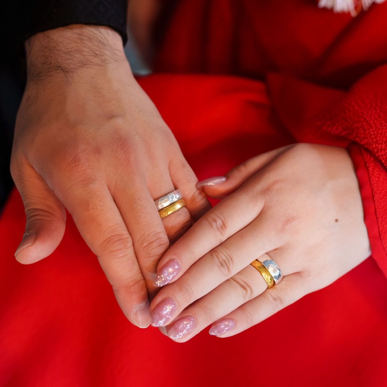夫が高校時代から憧れていた「市松」というブランドで、銀のリングと金のリングを2ペアずつオーダーして作っていただきました。